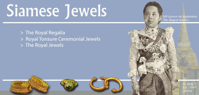 | Siam is welknown for her rich ruby and sapphire mines. The Siamese ruby's colour is only second to that of the extremely rare Burmese rubies. Thus, Thai history and royalties should undoubtedly be intertwined with precious gems. The influence of jewellery decoration came from India centuries ago, as witnessed in the use of staggering amount of jewels to decorate royal children during the Tonsure Ceremony. Here you can catch a glimpse into the bygone era, made disappeared with the changing time |