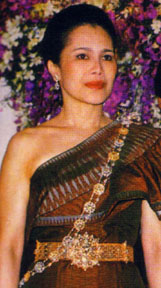 | The jewelled sash, or Sang-wal in Thai, is a traditional jewelled ornamental piece worn by Royal ladies. The sash is usually of 24-carat gold and diamond and coloured stones, most notably the Siamese Ruby that was in abundant. |