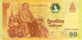 60 Baht bank notes come with a certificate and wordings in commemotation of the King's Diamond Jubilee. It is quite normal in Thailand to commemorate such important events with the printing of a special bank note. |